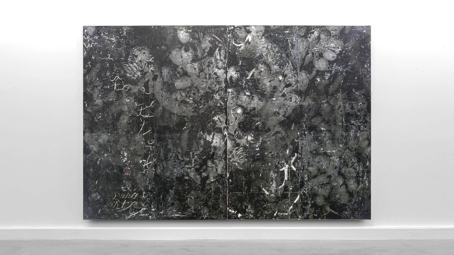 In First Letters fragmented body of Valenzuelas hand writing and the lost body of the image obtained through the work with light, reference each other in terms of identity, functioning as problematic areas in abstract compositions, eroded by incomplete texts or ruined “fields of color”. . Calligraphy and landscape emerge from between the cracks and scars of the painting as authentic visual events. They do so like the shadow of a visual experience lodged, like a caress or a slap, not in the conscious memory of the contemporary eye but in its skin.