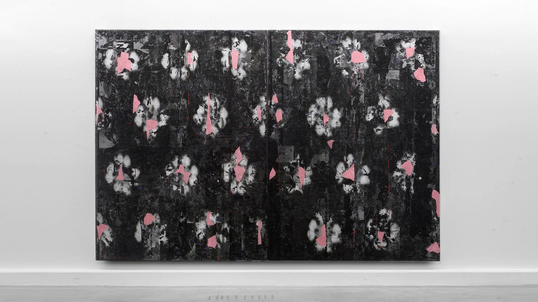 These two historical bodies function as antecedents to pose a a sort of critical re-composition of the original materiality of photography. Neither purely analogical nor digital, this re-composition, filtered through the photographic film, takes place on the alternative terrain of painting. Specifically inside the large-scale canvas, a projection of the historical frame, made modern in its most evident field of exploration for the eye and for the gaze.